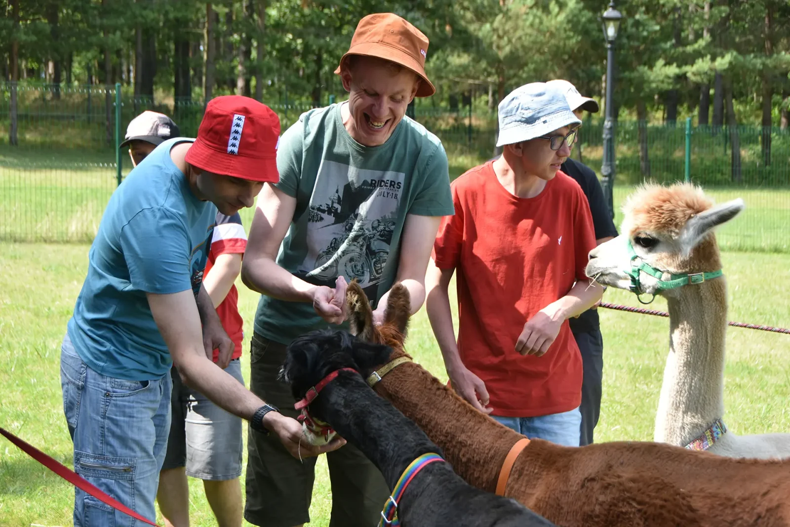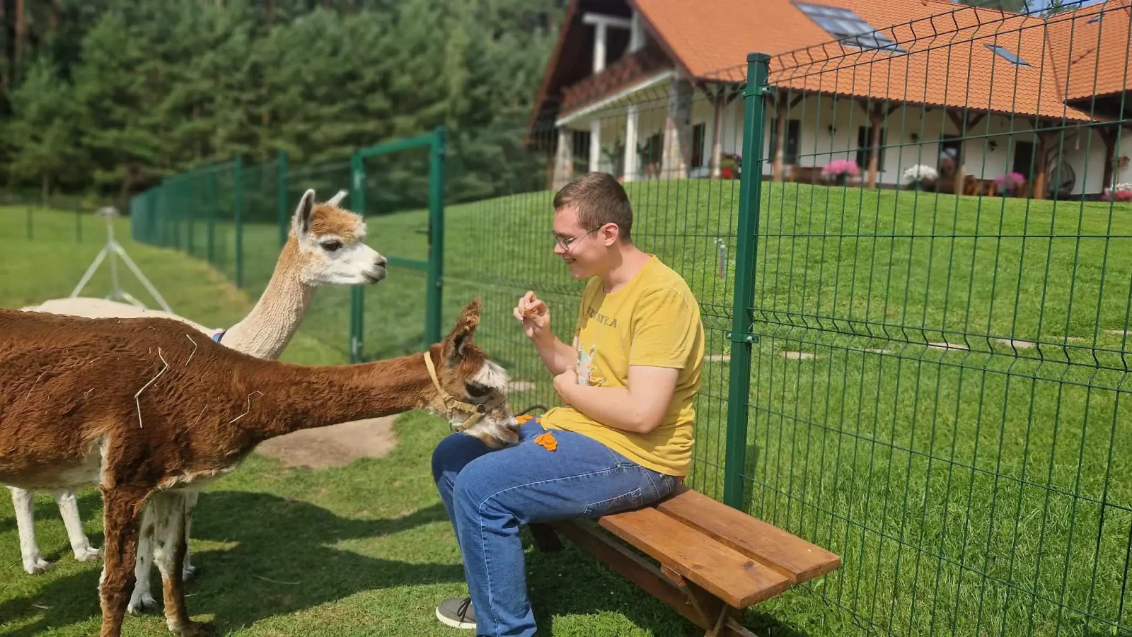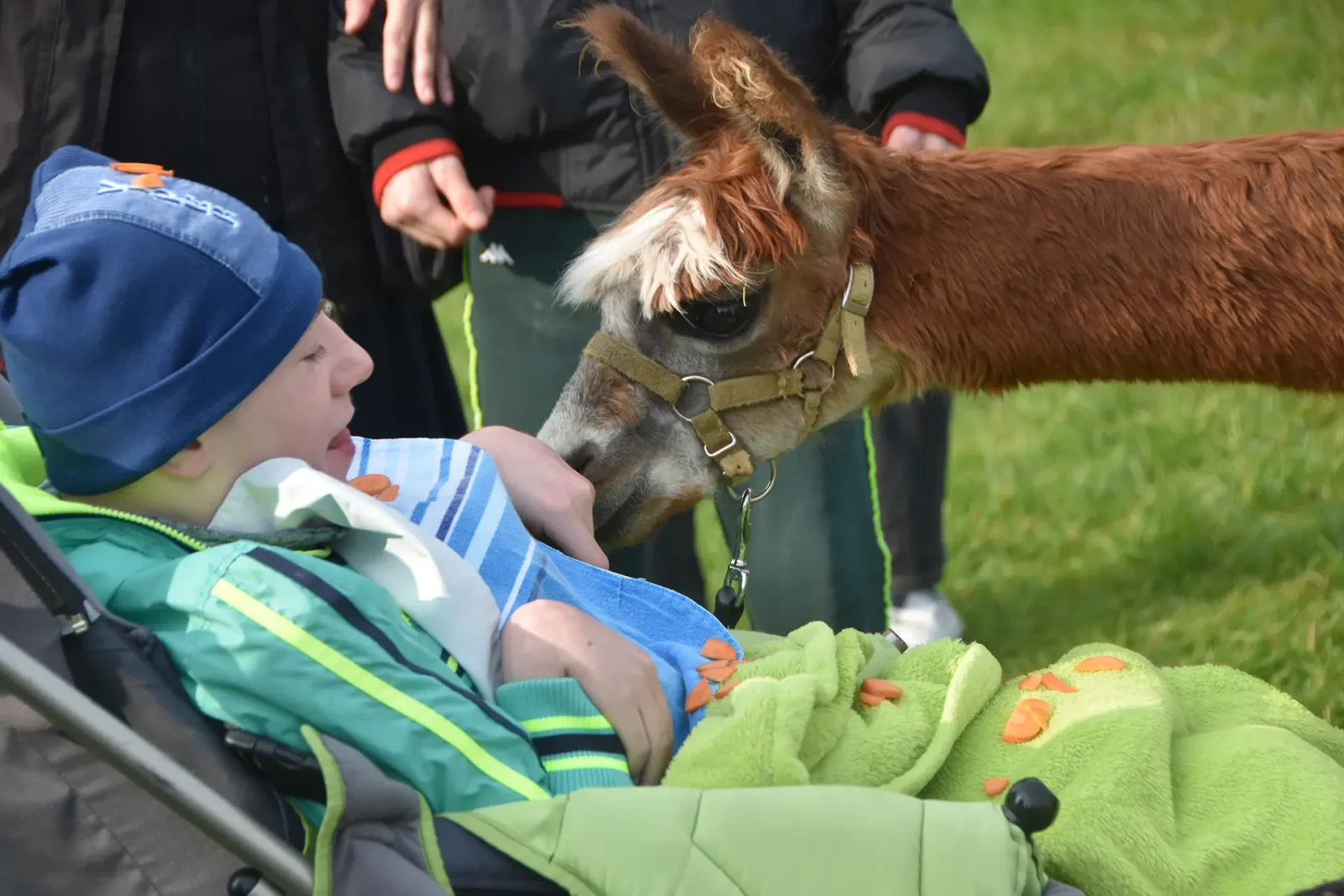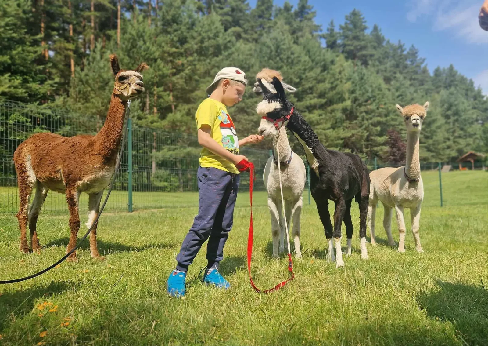 Spacery z alpakami motywują do aktywności fizycznej, rozwijają koordynację wzrokowo-ruchową, spostrzegawczość i dają poczucie sukcesu.