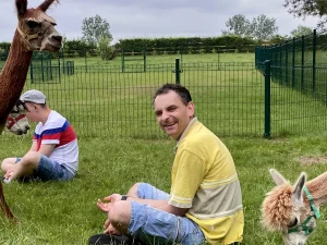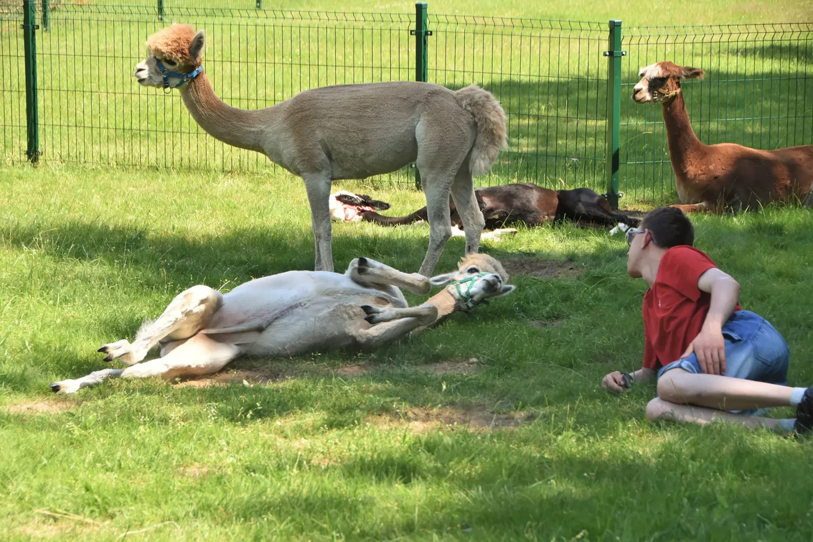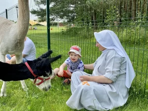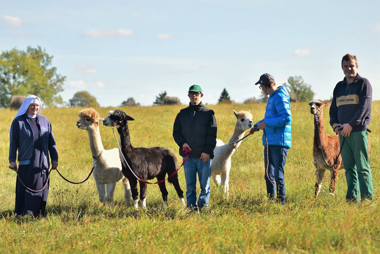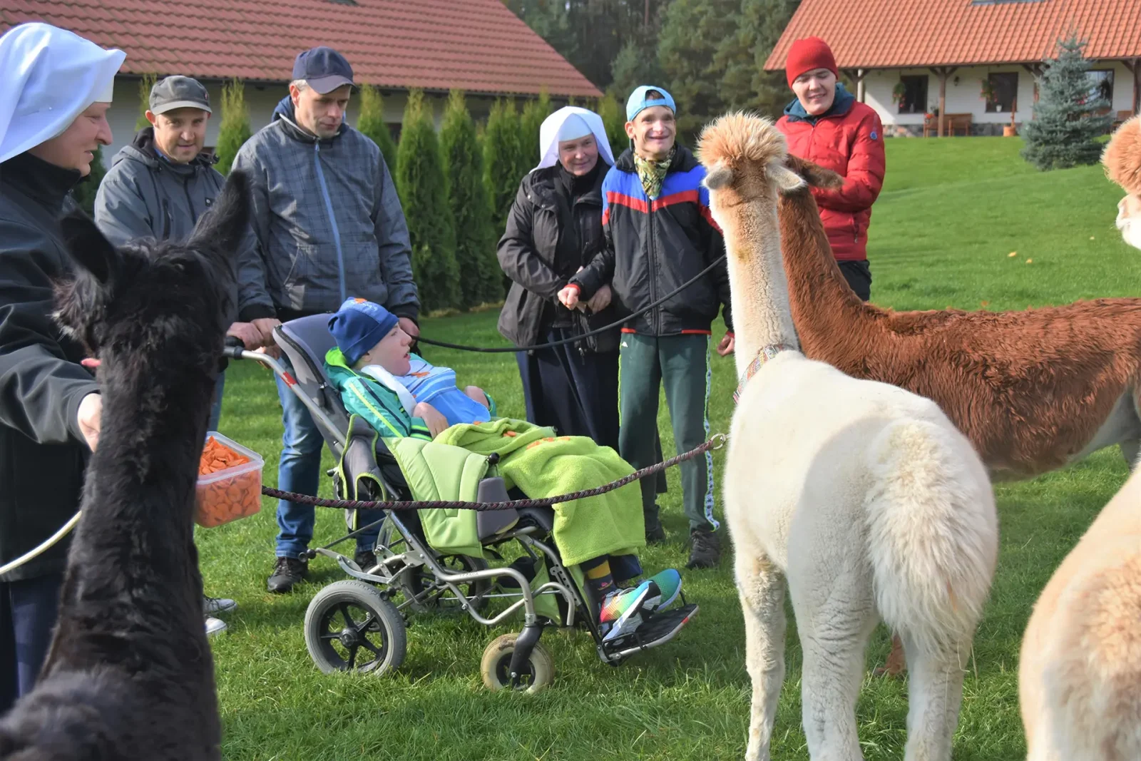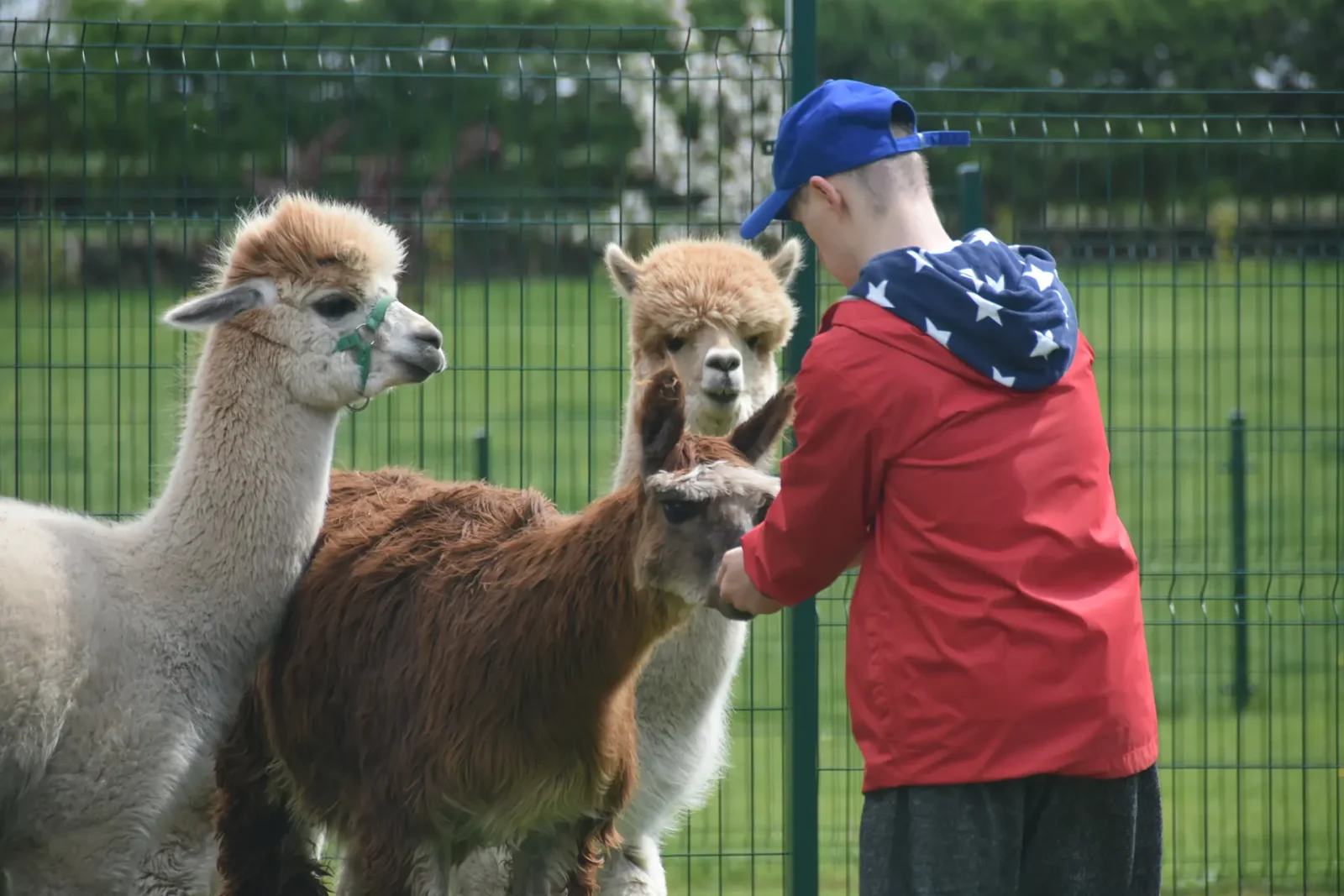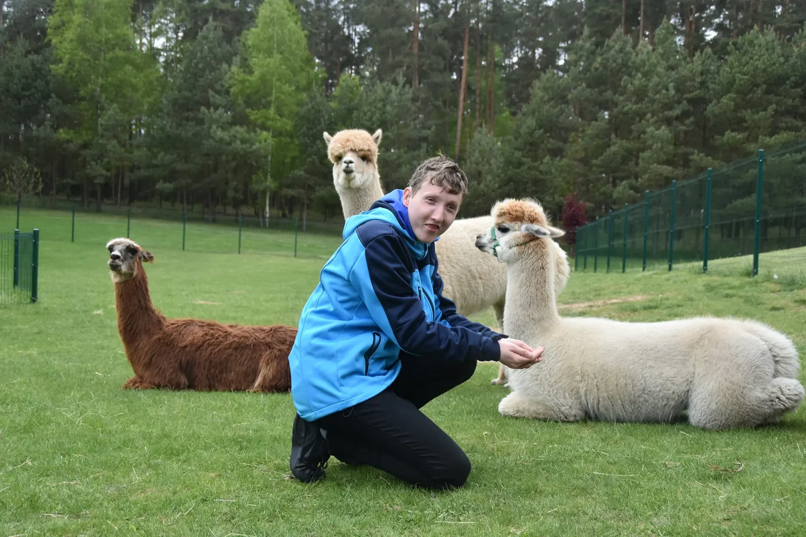 Spacery z alpakami motywują do aktywności fizycznej, rozwijają koordynację wzrokowo-ruchową, spostrzegawczość i dają poczucie sukcesu.