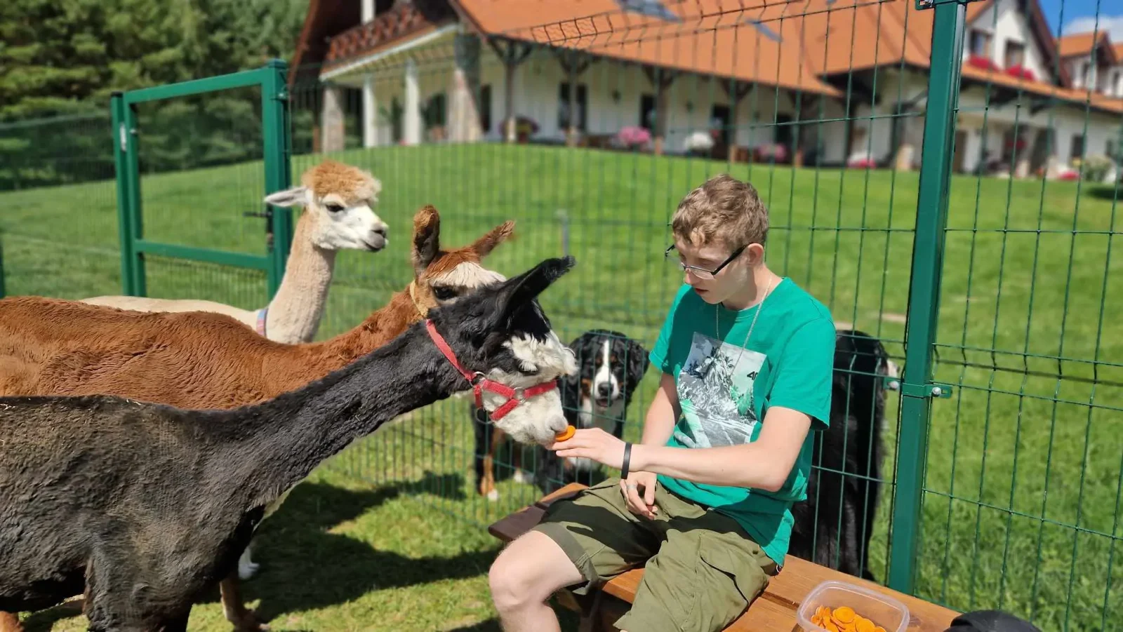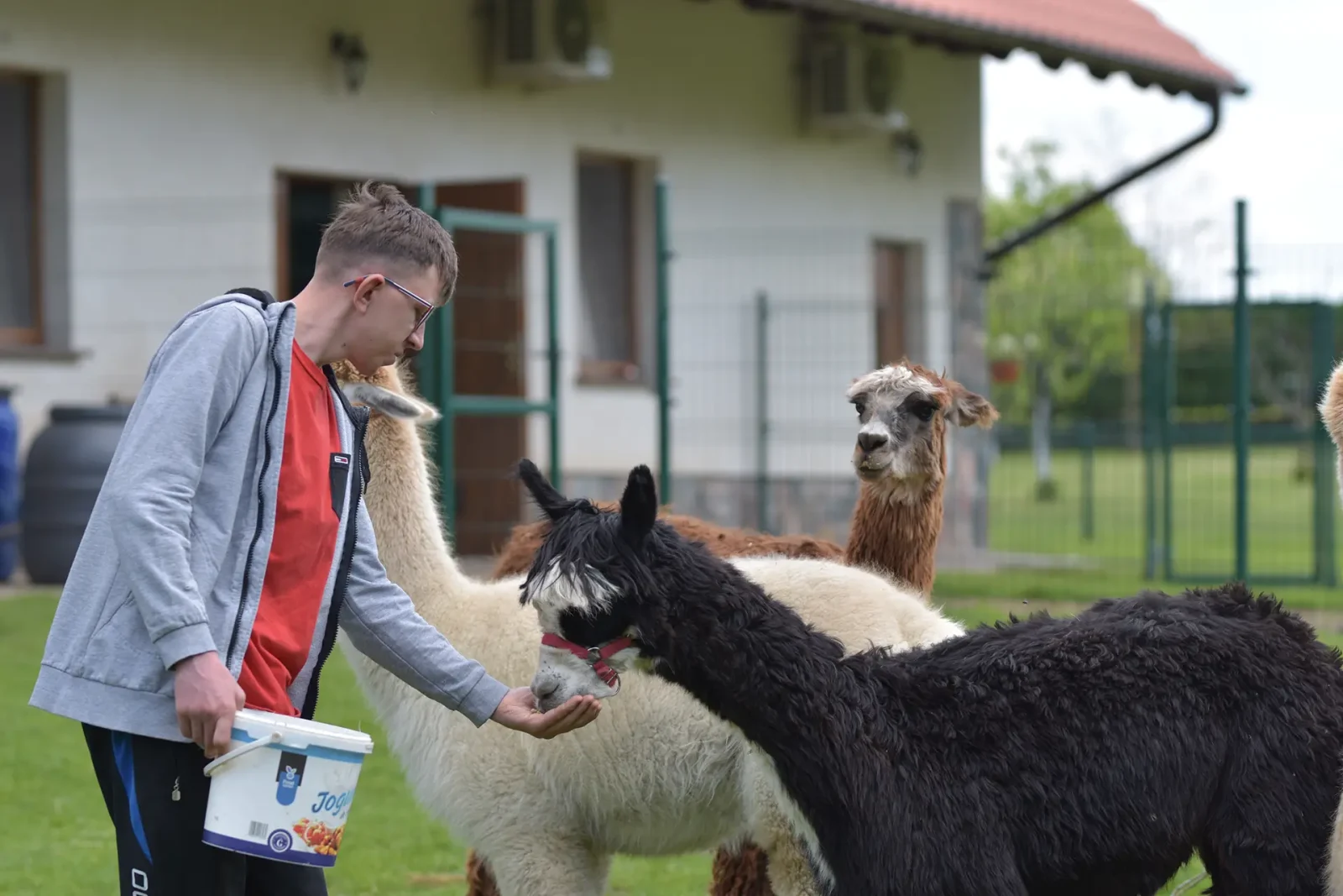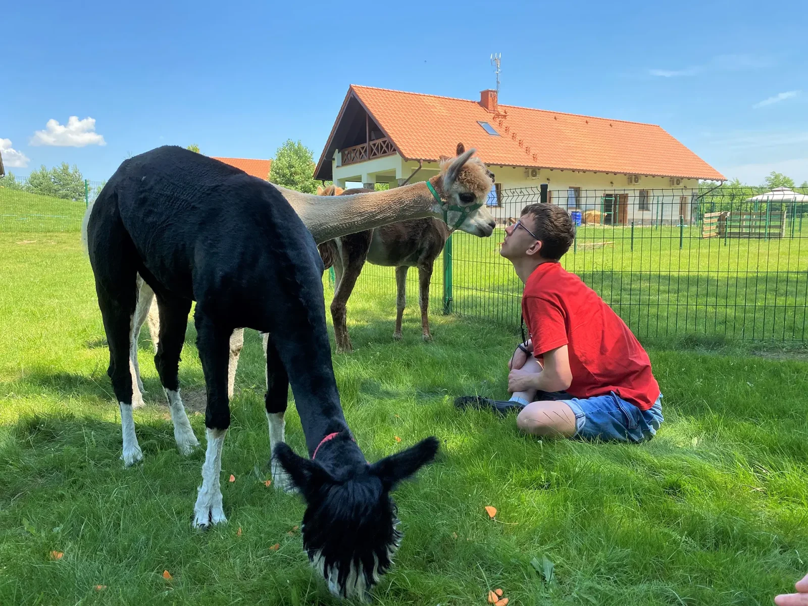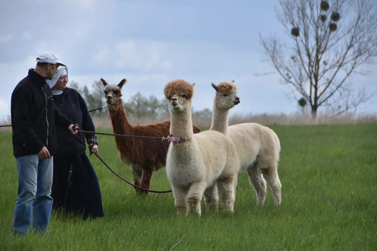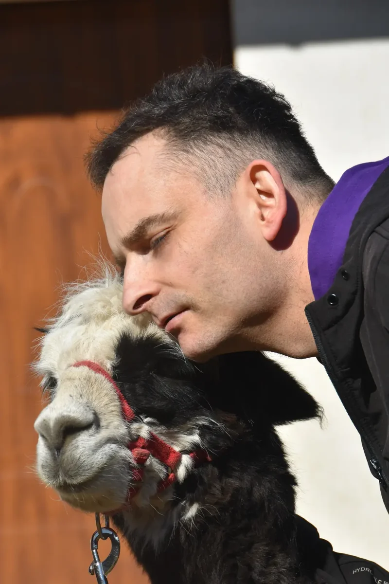 Byliśmy zaskoczeni jak wiele jest podobieństw w charakterze alpak i …kotów! Są równie czujne i niezależne. W tajemniczy sposób te dwa gatunki dobrze się dogadują. Oba są niewyczerpanym nigdy źródłem pomysłów i obiektem obserwacji.