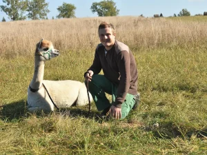 Pierwsza alpaka, co prawda nie dostała na imię Agata lecz G-Agatek 😉 bo sprowadziliśmy z hodowli Mariusza Wierzbickiego w Bujence k. Ciechanowca 4 „chłopców”: GAGATKA, PEPE, DIEGO i MARCELA. Odtąd na naszej rozległej łące przechadzają się te „małe wielbłądy”.