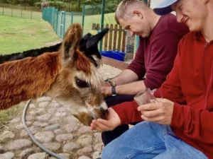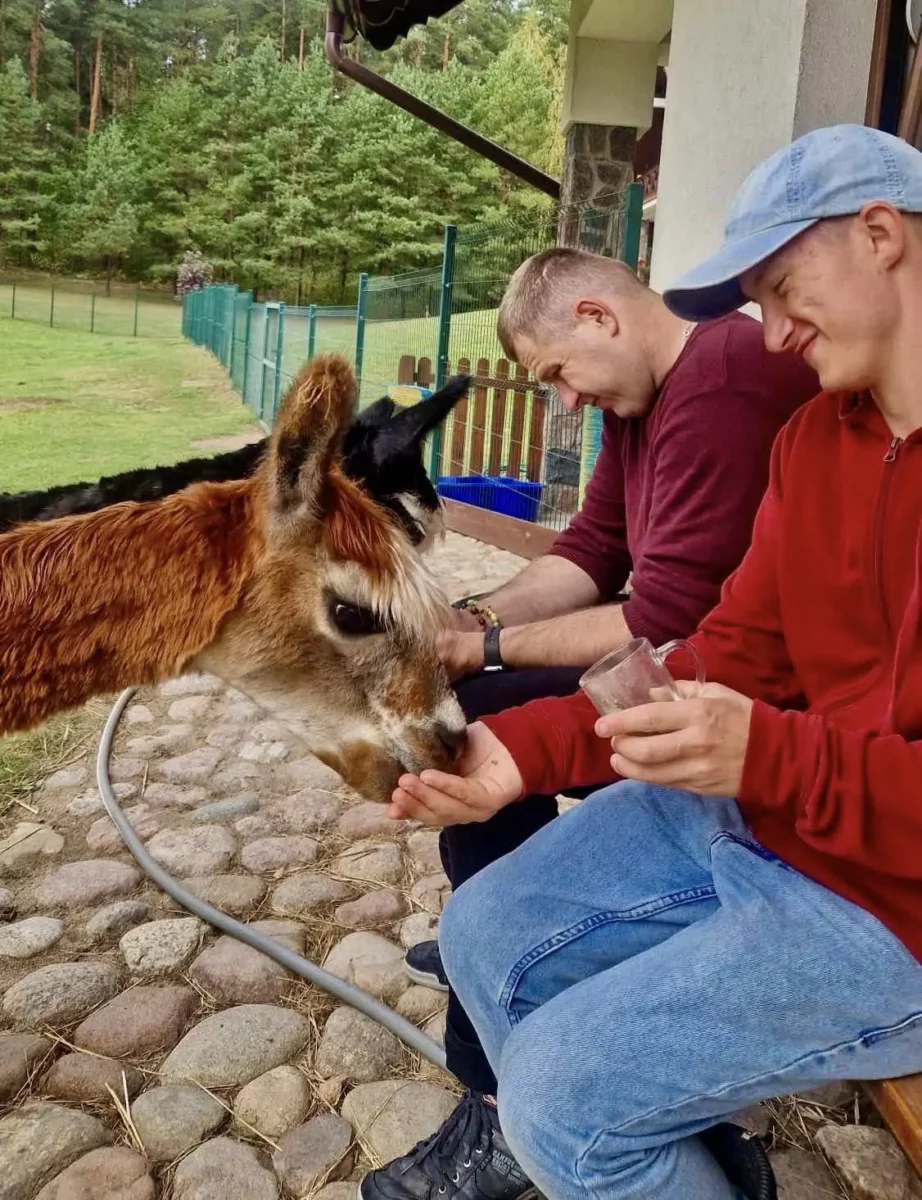 Inni mieszkańcy „Tęczowego Domu” przyjeżdżają z oddalonego o 16 km Ełku, aby odpocząć, skorzystać z uroków natury, z kontaktu z dzikimi i domowymi zwierzętami, uczestniczyć w zajęciach edukacyjnych i doświadczyć pracy na farmie.